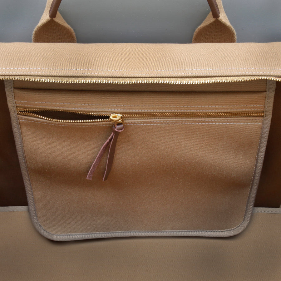 This classic holdall is handmade in England by Brady, from their signature bonded cotton canvas. It follows a traditional form, and has one large internal compartment with a smaller zip pocket inside. The bag has a detachable shoulder strap made from tough cotton webbing.