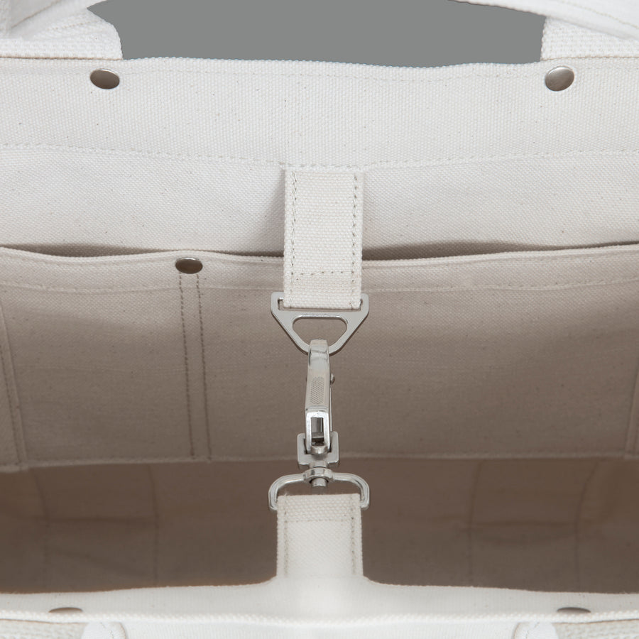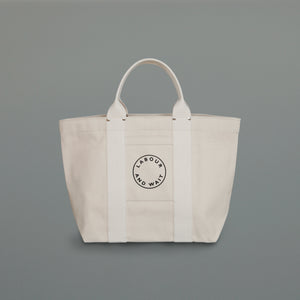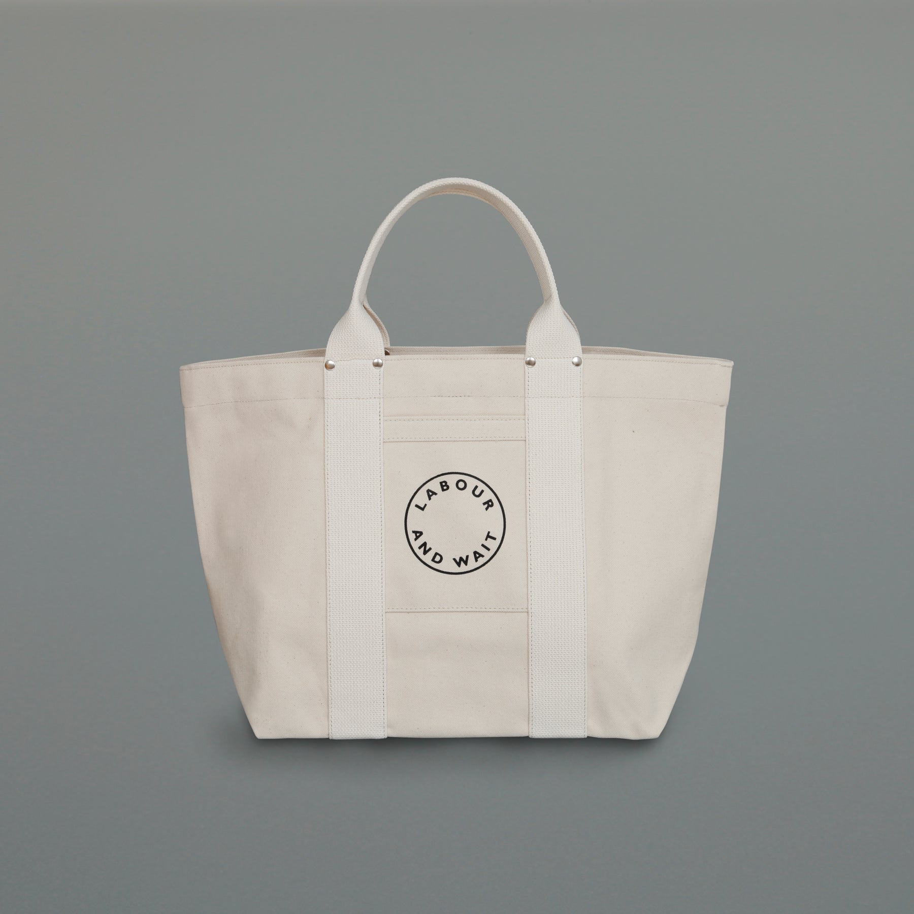 This carryall is made in Japan exclusively for Labour and Wait. It is constructed from robust cotton canvas with riveted handles. The bag is inspired by traditional coal bags, but with the addition of useful internal pockets and a clip to hold the top together.