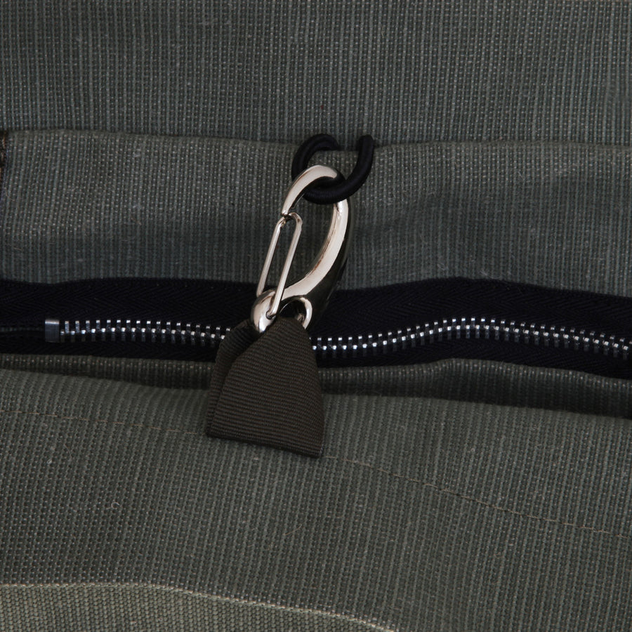 This robust canvas bag is made to last. The tough cotton/linen fabric is derived from a military cloth used by the Swiss army. The bag has durable leather handles, which can be adjusted to enable it to be carried in the hand or on the shoulder.