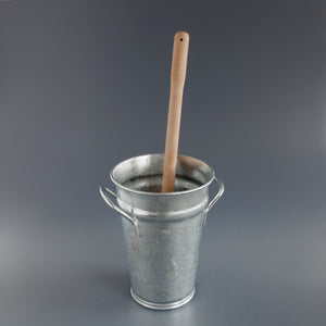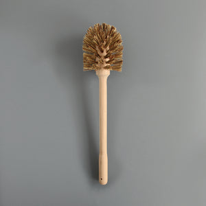 This wooden toilet brush with natural fibre bristles comes with a galvanised bucket holder.