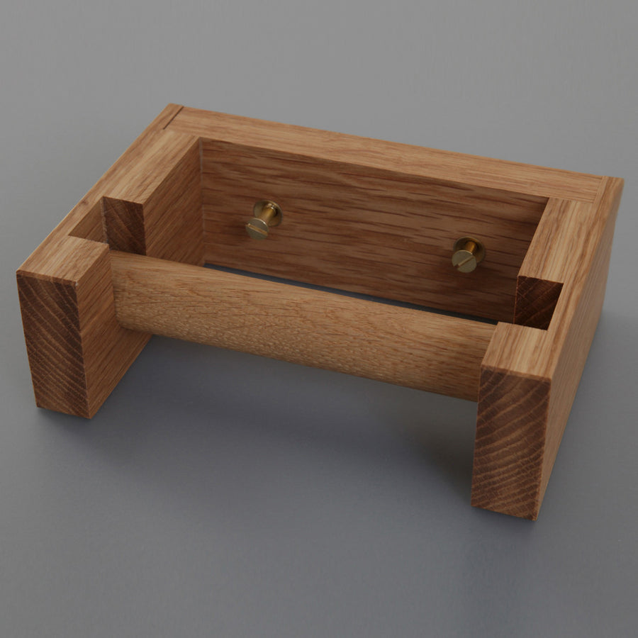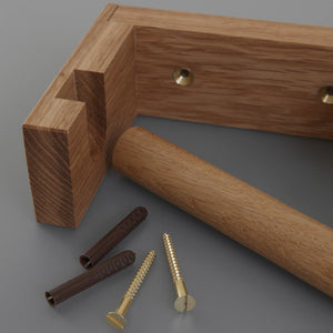 We loved the simplicity of this wooden Toilet Roll Holder. Beautifully crafted in solid Oak in England, it comes complete with brass screws and fittings.