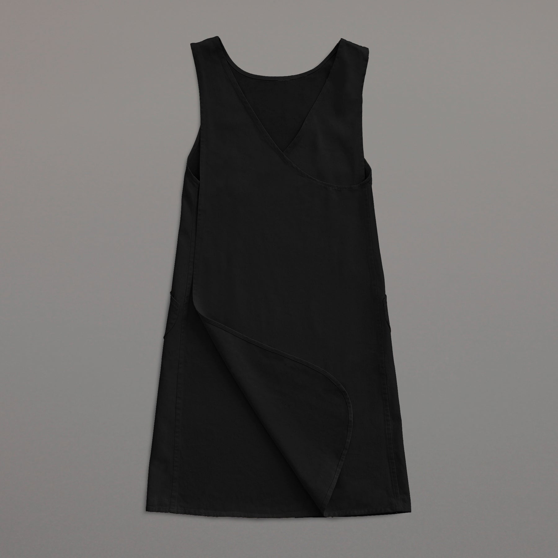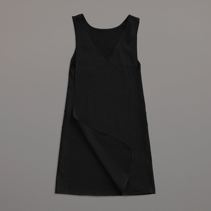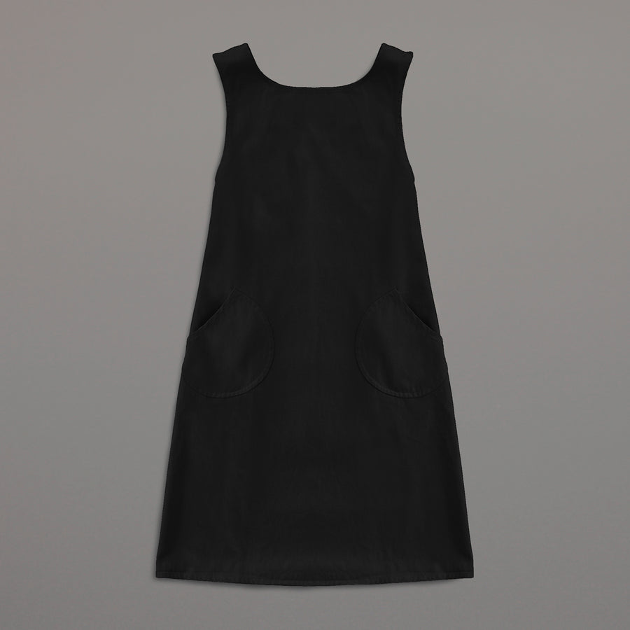 This popular apron style pinafore dress is made in Norfolk, England by our friends at 'Old Town'. The dress has two rounded patch pockets, and simply crosses over at the back.