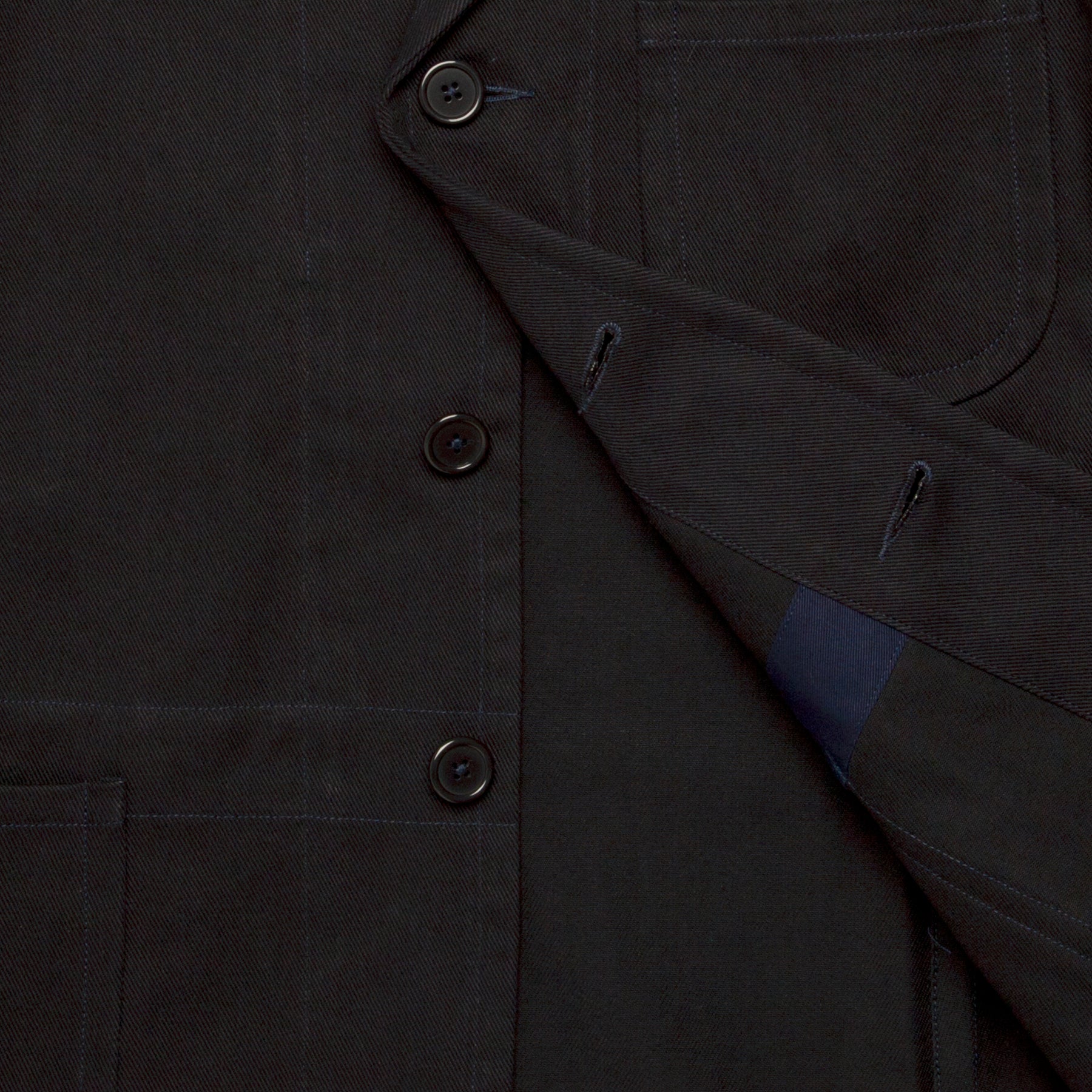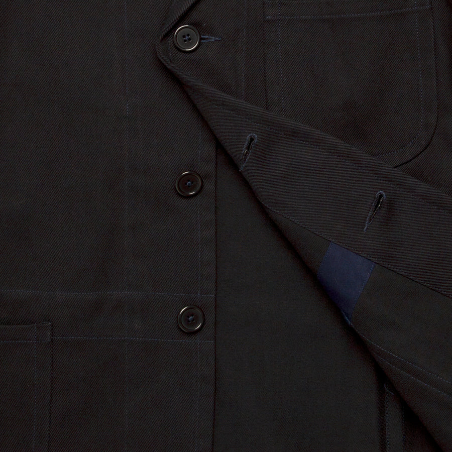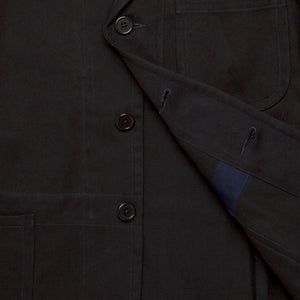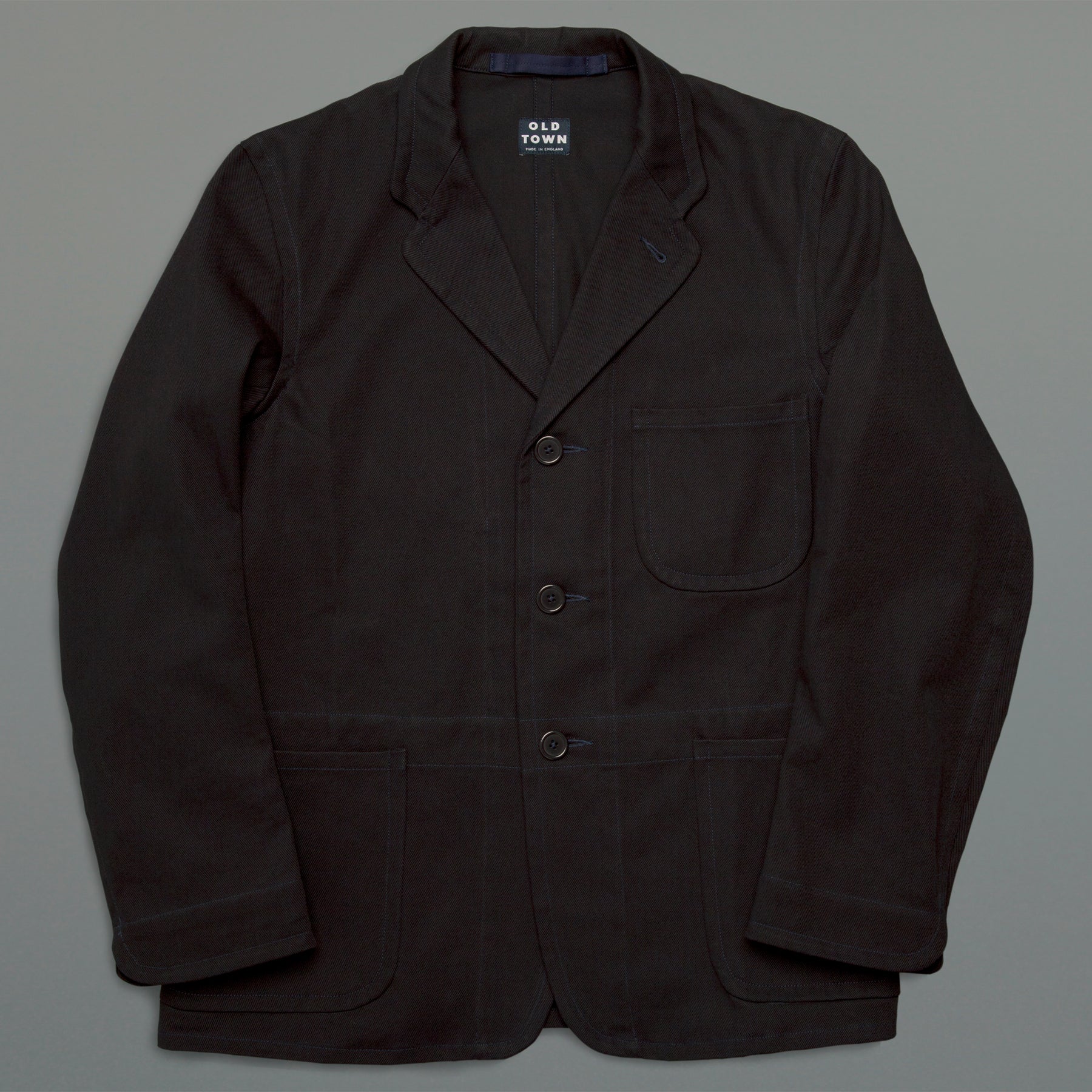 This jacket is made by our friends at OLD TOWN, from sturdy cotton drill. It is unlined and has three patch pockets and a plain back.