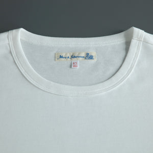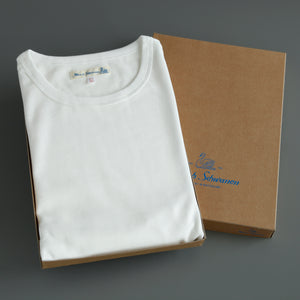 This classic-fit crew-neck T shirt is made in Germany with a 1960s-era circular knitting machine using 100% organic cotton. Side seams, under-arm inserts, and baseball stitching make for a fit of the era, which is timeless and long-lasting.