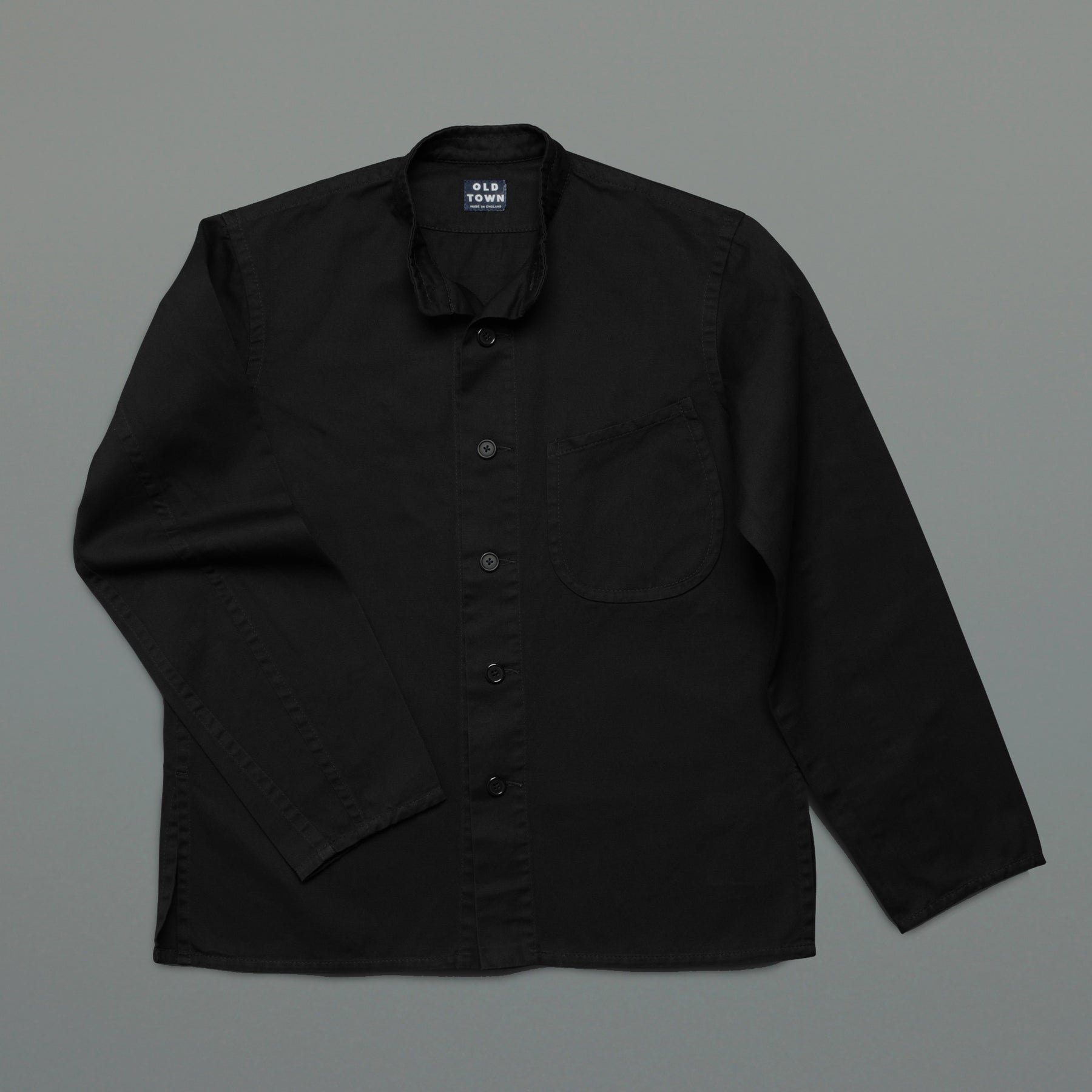 This jacket is made by OLD TOWN, from a mid-weight cotton drill. This garment is midway between a jacket and a shirt, and can therefore be worn tucked into trousers or loose.