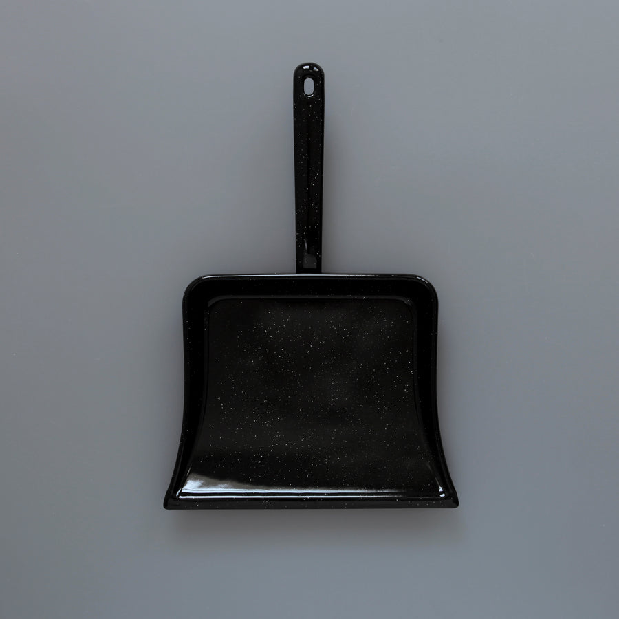 A proper enameled dustpan from Austria with a black speckle finish.