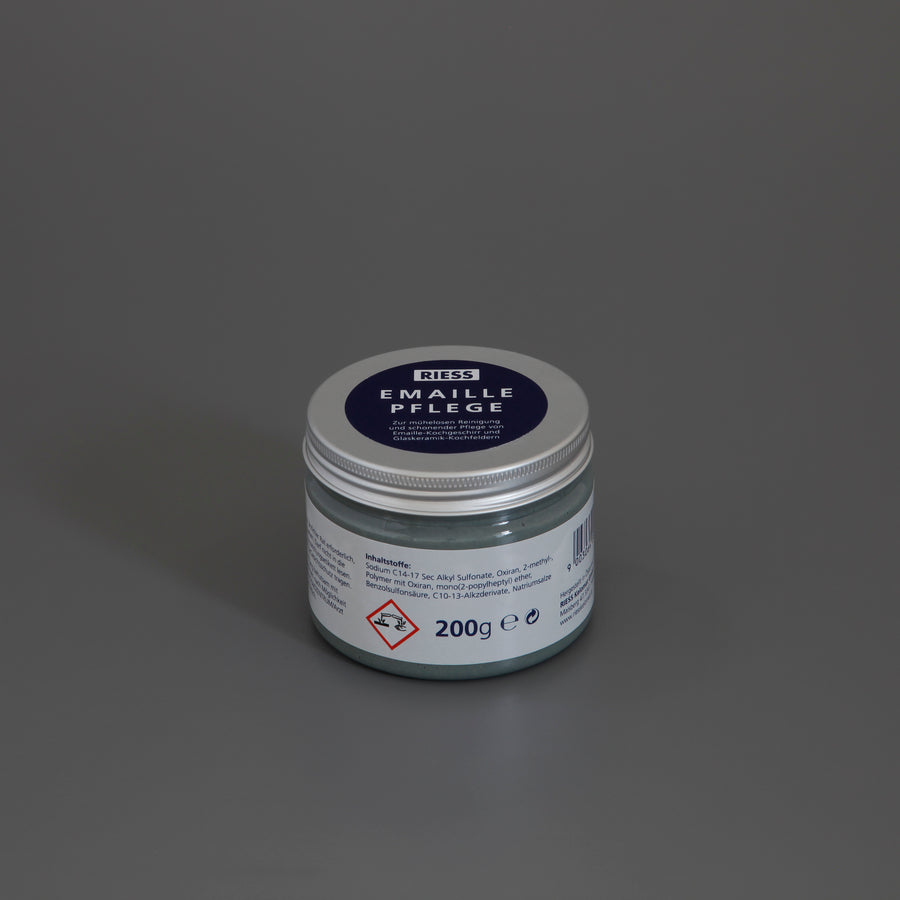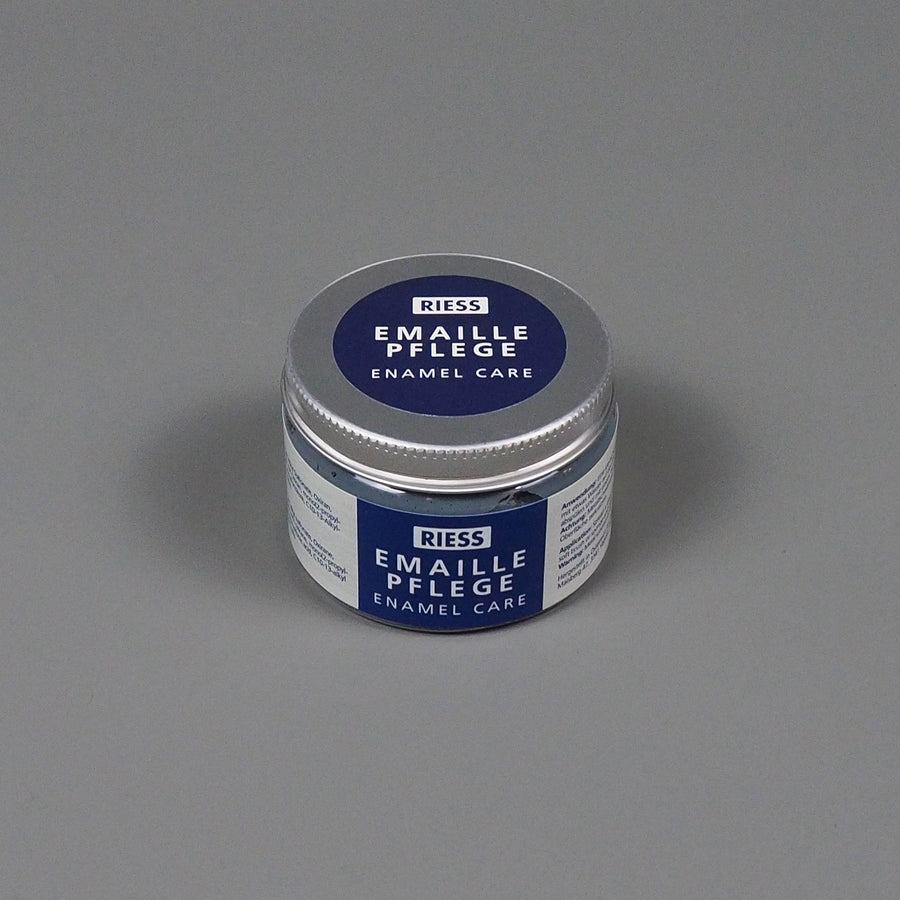 Keep your enamelware in tip-top condition with this cleaning paste. Simply apply the paste to your enamel surfaces with a warm, damp sponge, and scrub clean. This special paste will bring your pots and the like back to life! It can also be used on ceramic hobs... one of our colleagues even uses it on his bath, it's that good!