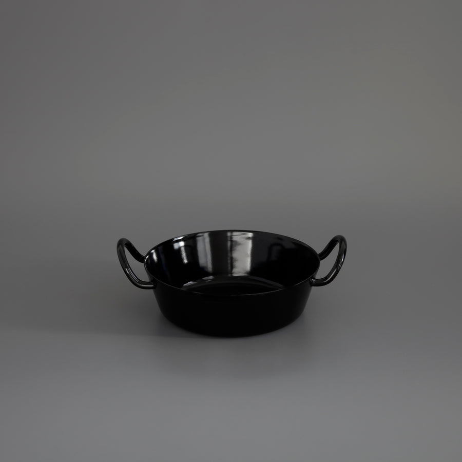 This black enamel gratin dish is the perfect size for a generous portion for one person. It can be used in the oven or on the hob. Suitable for gas, electric, ceramic and induction hobs. It is made by Riess in Austria.