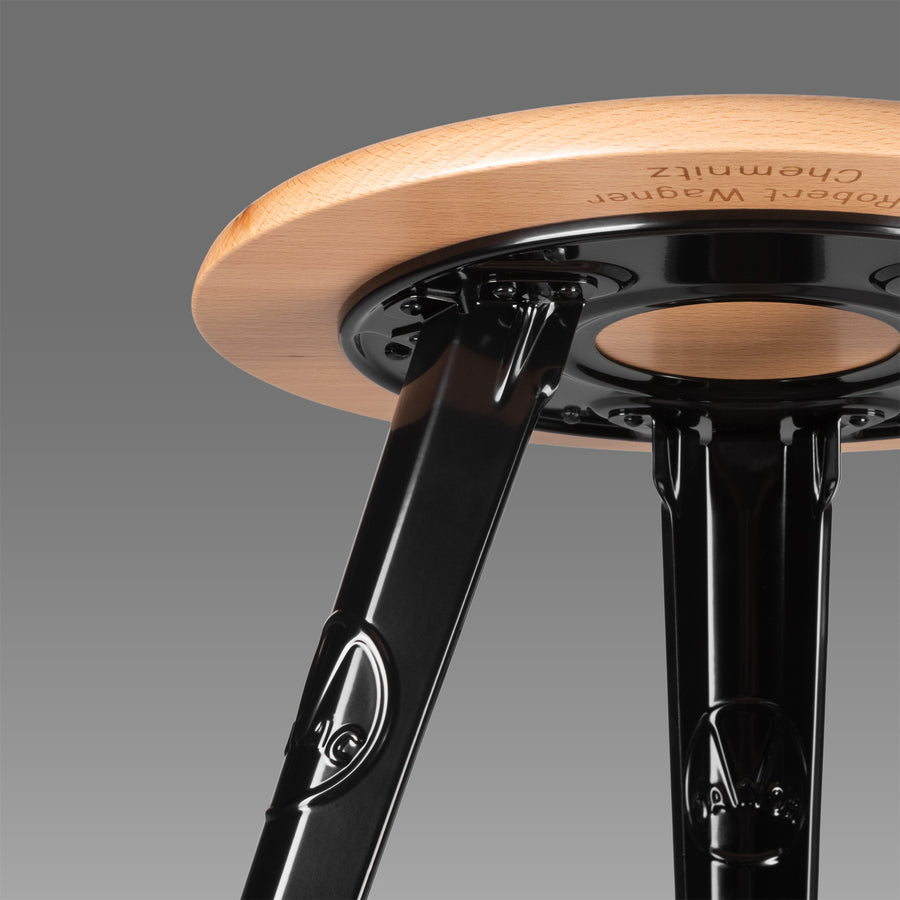 The new founders are committed to local production, working together with traditional craftsmen in the Ore Mountains. The constituent parts of the stool are produced within a radius of just 40km. The Rowac-Schemel represents timeless design combined with functional, indestructible and honest construction.