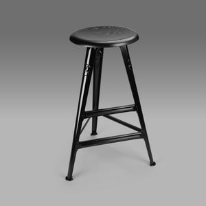 The 'Rowac-Schemel', meaning 'stool', was a ubiquitous sight in factories, workshops and schools across Germany from the 1900s until the 1950s. Made and designed by Rowac around the turn of the 20th century, its pioneering, lightweight and durable pressed metal construction proved indispensable to workers and students alike.