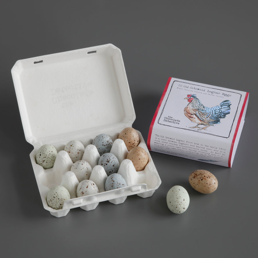 These delicious chocolate eggs are filled with hazelnut praline and salted caramel. The makers bought a cocoa farm in Ecuador, and as a result, their chocolate products are fully traceable. The 12 eggs are safely packaged in a mini cardboard egg box.