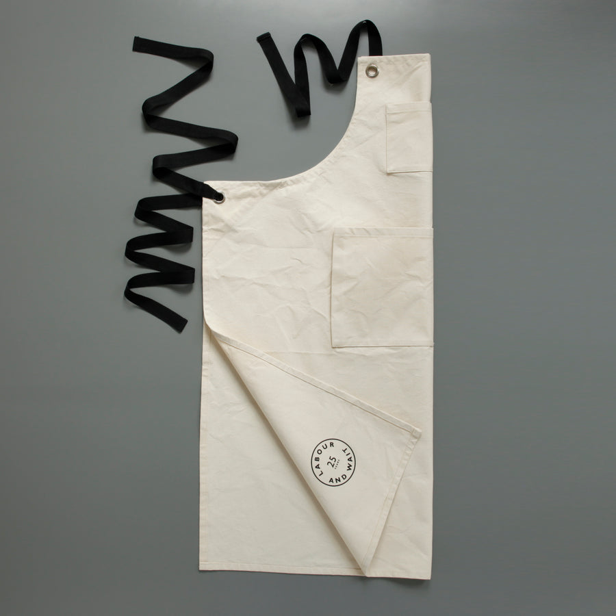 A special edition of a LABOUR AND WAIT classic. To celebrate our 25th anniversary, we have introduced a bib apron in ecru, with a '25 Years' logo printed on the reverse. As ever, the apron is made from hardwearing 100% cotton duck fabric with black tapes and metal eyelets.