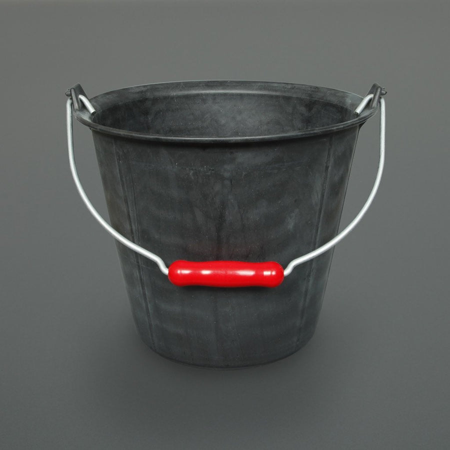 This flexible bucket is produced for the building trade in France. Made from hardwearing synthetic rubber. The bucket has embossed increments.