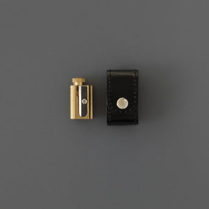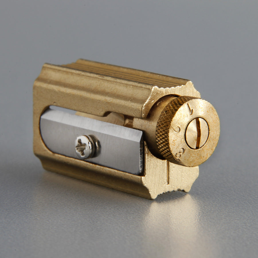 This solid brass pencil sharpener has been in production since the 1950s. The adjustable dial has three settings, allowing pencils to be sharpened to different point types, for different uses.